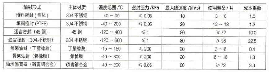 填料密封、迷宮密封、骨架油封、軸(zhóu)承隔離器 4種軸(zhóu)承箱(xiāng)密(mì)封形式都(dōu)較為常(cháng)用,也各有優(yōu)缺點,應用場合各不相同,下麵通過數(shù)據加(jiā)以比較和分析。